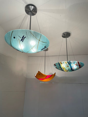 These fused glass lighting shades in my current lighting catalog, which can be ordered. Please send me an email to request more information.